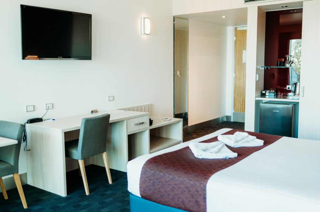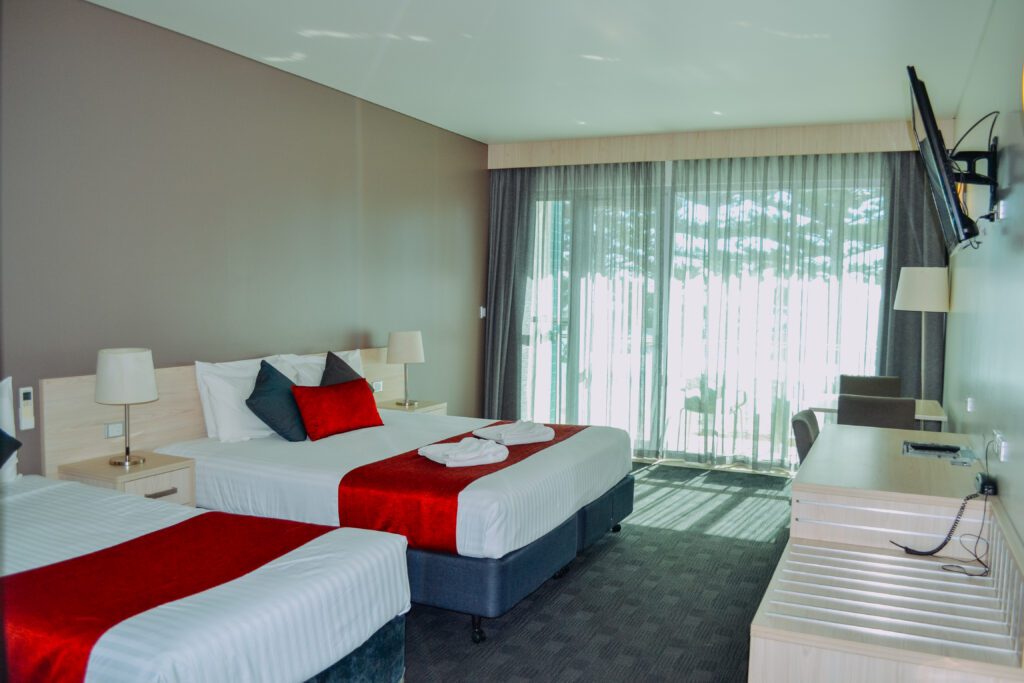 Family interconnecting room – offers two adjoining spaces — one with a queen bed, and the other with a queen bed and king single — perfect for families or groups who want extra space and comfort while staying connected. *Please call to arrange this booking due to availability.*