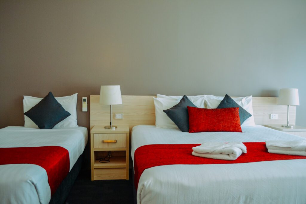 Twin Deluxe Room – offering a queen bed and a king single, perfect for friends, colleagues, or small families needing flexible sleeping arrangements.